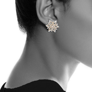 Hand crafted in white gold and studded with sparkling diamonds .